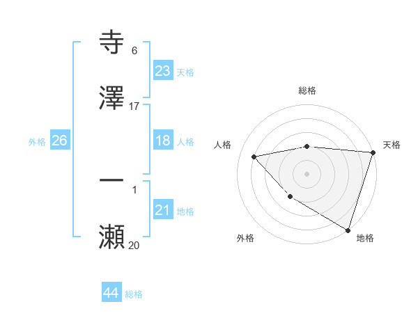寺澤 一瀬さんを姓名の画数から五運を鑑定