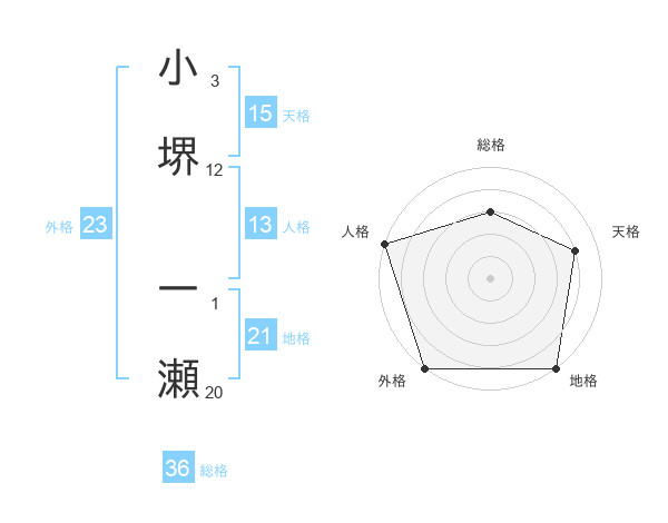小堺 一瀬さんを姓名の画数から五運を鑑定