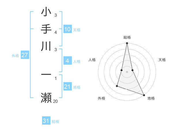 小手川 一瀬さんを姓名の画数から五運を鑑定