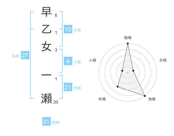 早乙女 一瀬さんを姓名の画数から五運を鑑定