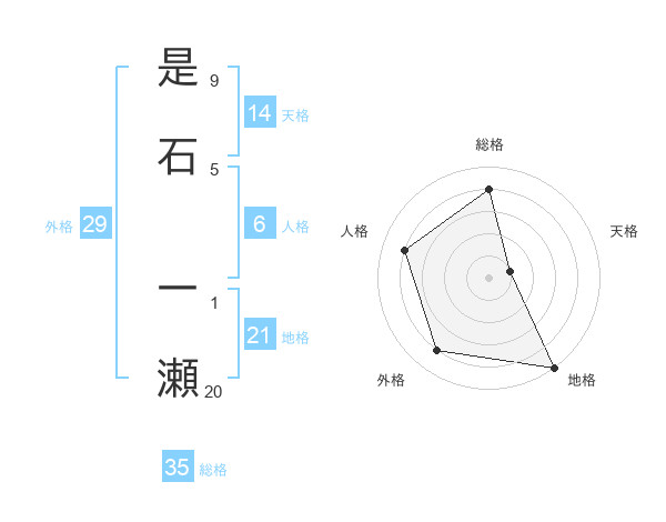 是石 一瀬さんの総格は35画の4点!