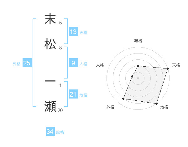 末松 一瀬さんの天格は13画の5点!