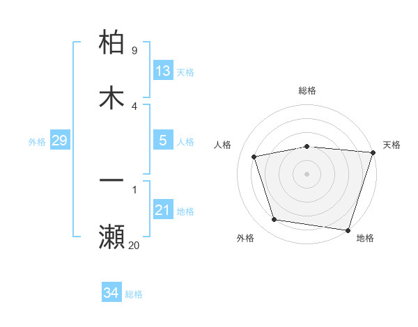 柏木 一瀬さんの天格は13画の5点!