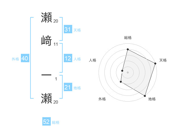 瀬﨑 一瀬さんの総格は52画の4点!