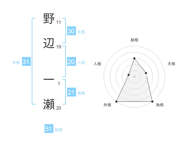 野辺 一瀬さんを姓名の画数から五運を鑑定