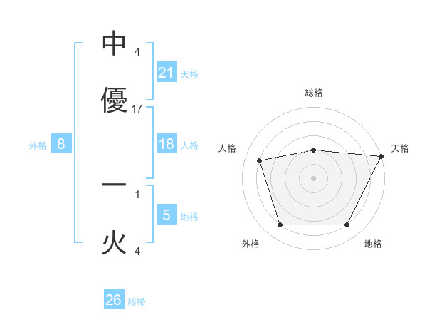 中優 一火さんの地格は5画の4点!