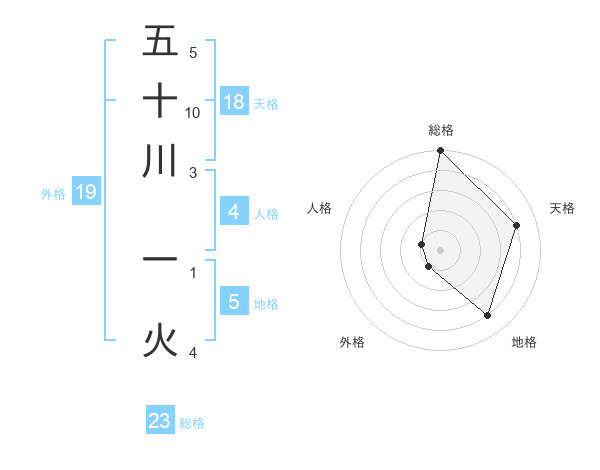五十川 一火さんの総格は23画の5点