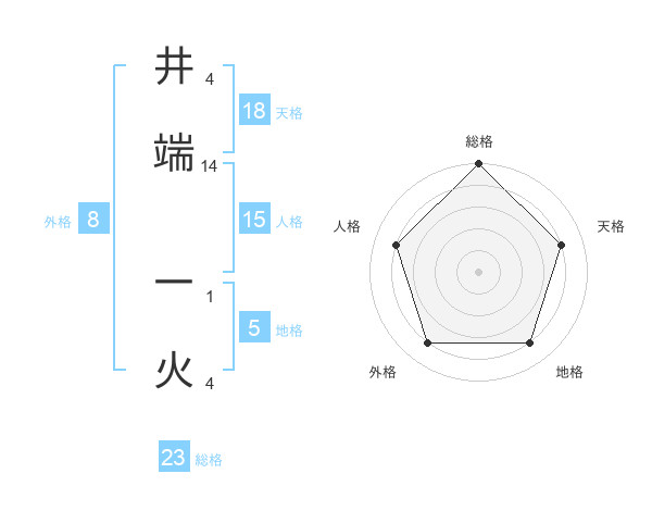 井端 一火さんの総格は23画の5点!