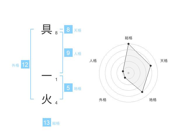 具 一火さんの総格は13画の5点!
