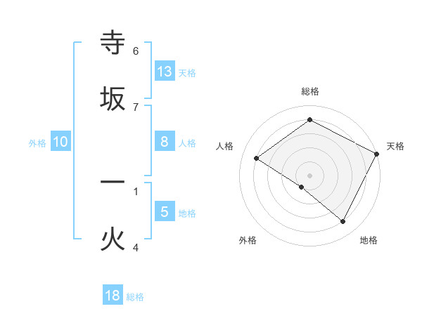 寺坂 一火さんを姓名の画数から五運を鑑定