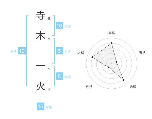 寺木 一火さんの総格は15画の4点!