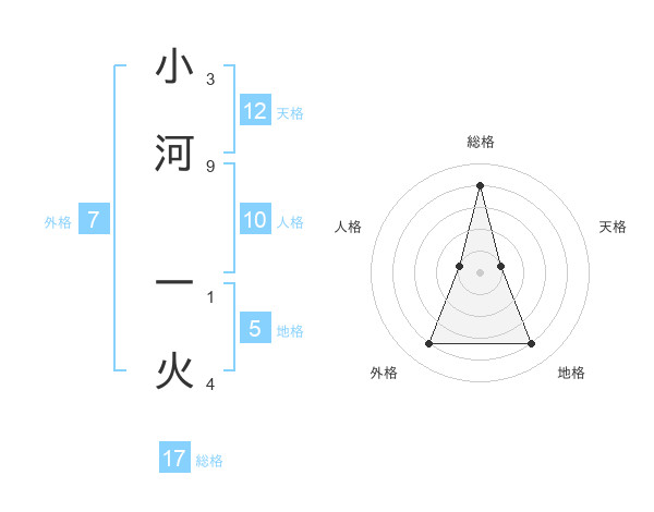 小河 一火さんの総格は17画の4点!