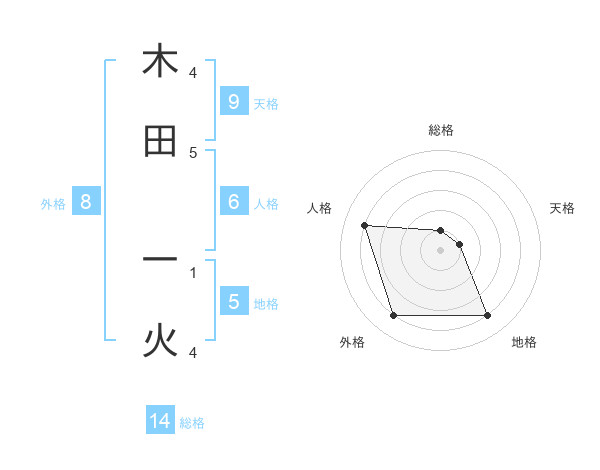 木田 一火さんの地格は5画の4点!