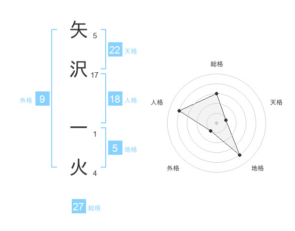矢沢 一火さんを姓名の画数から五運を鑑定
