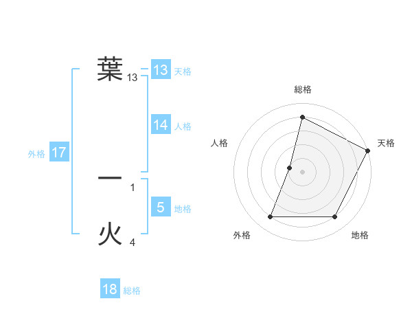 葉 一火さんの総格は18画の4点!