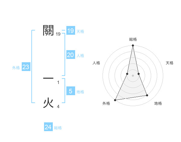 關 一火さんの外格は23画の5点!