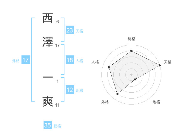 西澤 一爽さんの天格は23画の5点