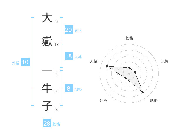 大嶽 一牛子さんを姓名の画数から五運を鑑定