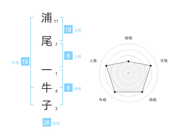 浦尾 一牛子さんの天格は18画の4点!