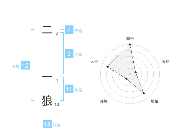 二 一狼さんの総格は13画の5点!