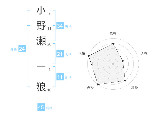 小野瀬 一狼さんを姓名の画数から五運を鑑定