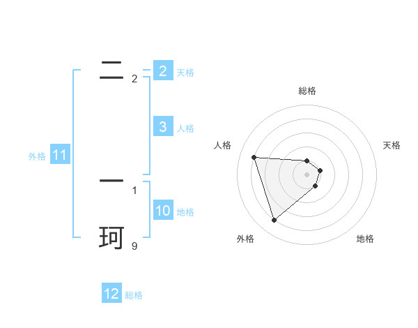 二 一珂さんの外格は11画の4点!