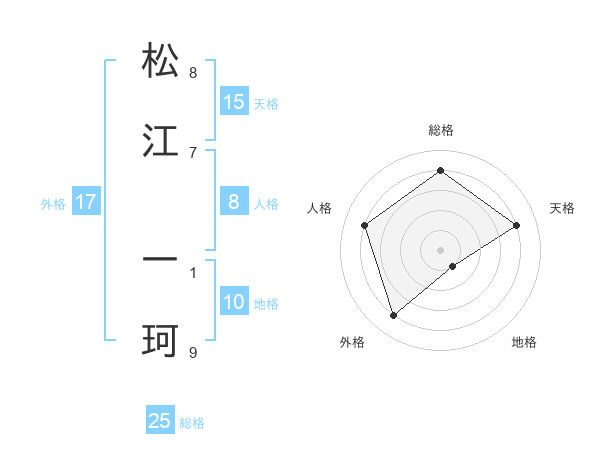 松江 一珂さんの総格は25画の4点!