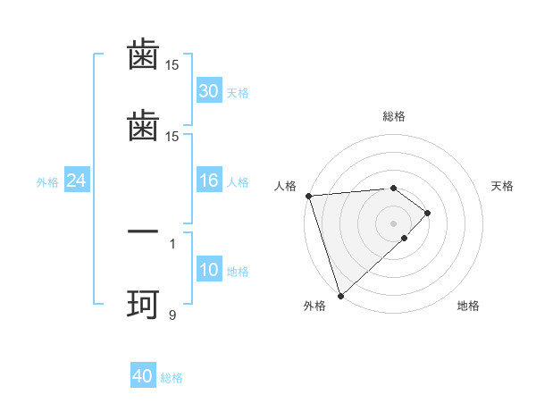 歯歯 一珂さんの外格は24画の5点!
