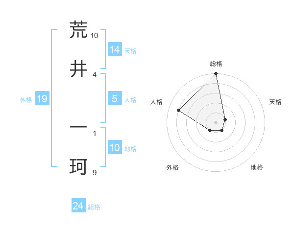 荒井 一珂さんの総格は24画の5点
