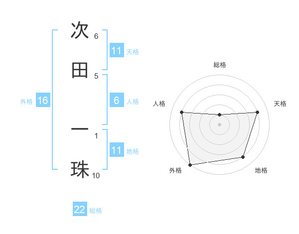 次田 一珠さんの総格は22画の1点!