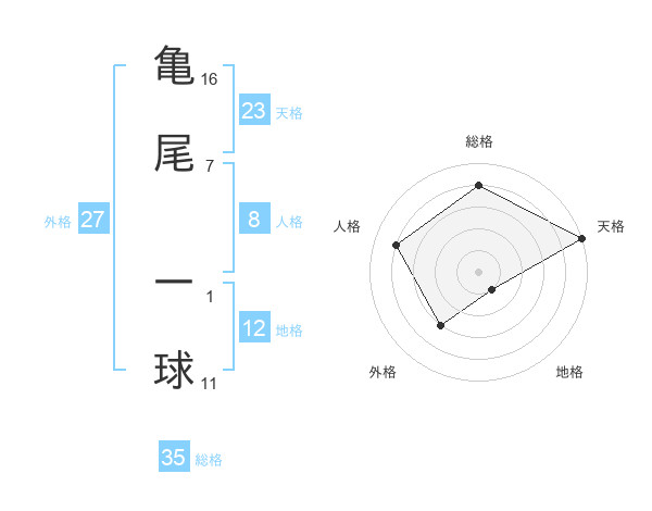 亀尾 一球さんを姓名の画数から五運を鑑定