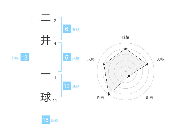 二井 一球さんの総格は18画の4点!