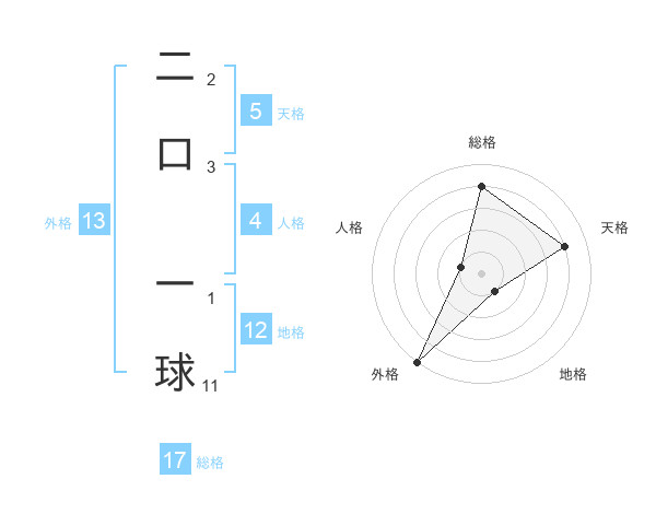 二口 一球さんの外格は13画の5点!