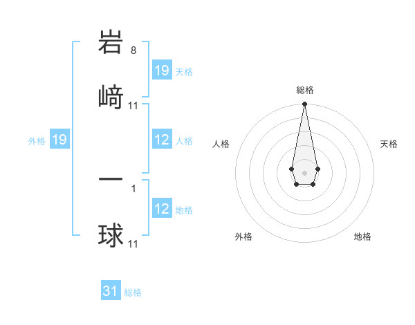 岩﨑 一球さんを姓名の画数から五運を鑑定