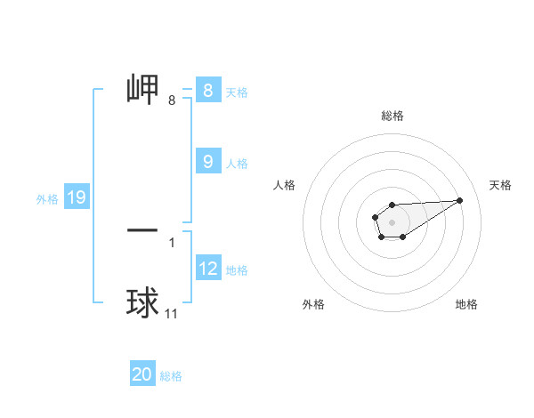 岬 一球さんの総格は20画の1点!
