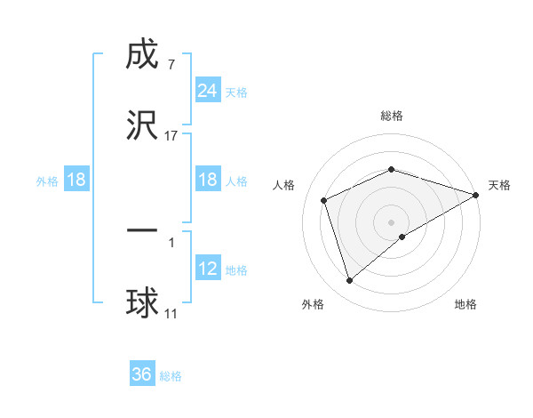 成沢 一球さんの外格は18画の4点!