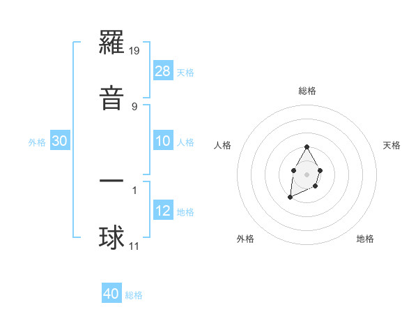 羅音 一球さんの総格は40画の2点!