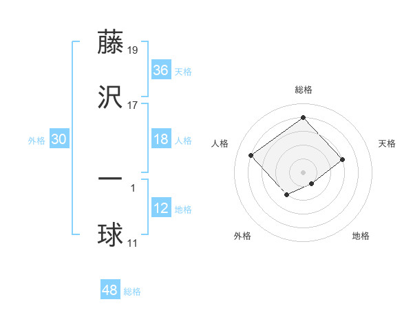 藤沢 一球さんを姓名の画数から五運を鑑定