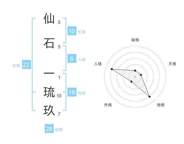 仙石 一琉玖さんを姓名の画数から五運を鑑定