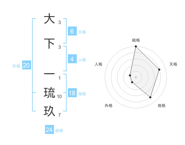 大下 一琉玖さんの総格は24画の5点