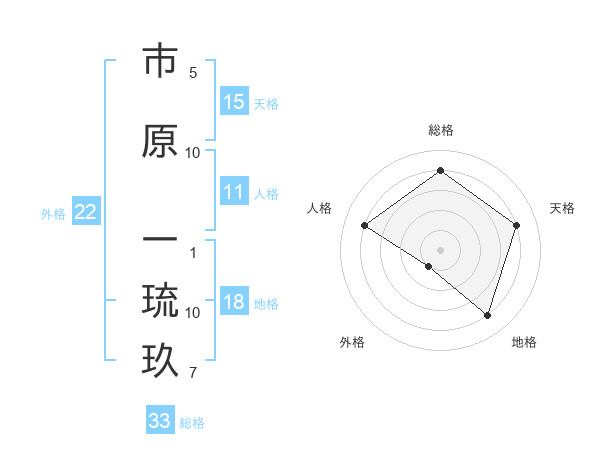 市原 一琉玖さんの総格は33画の4点!