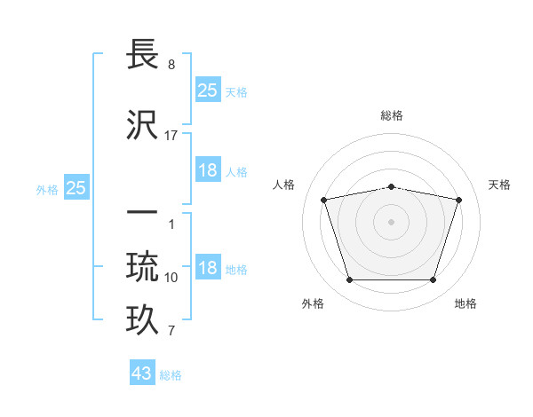 長沢 一琉玖さんを姓名の画数から五運を鑑定