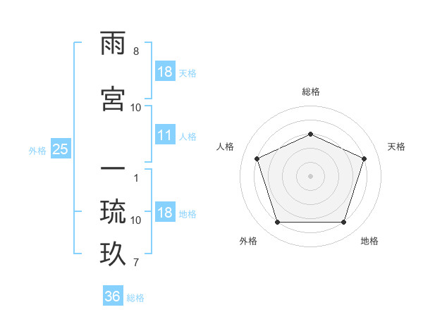 雨宮 一琉玖さんの天格は18画の4点