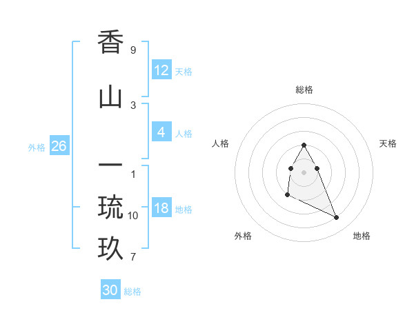 香山 一琉玖さんを姓名の画数から五運を鑑定
