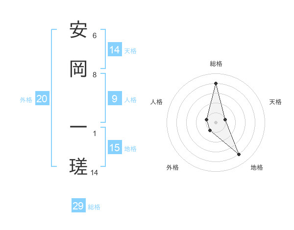 安岡 一瑳さんを姓名の画数から五運を鑑定