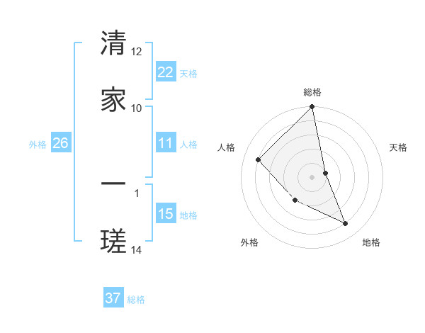 清家 一瑳さんを姓名の画数から五運を鑑定