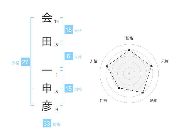 会田 一申彦さんを姓名の画数から五運を鑑定