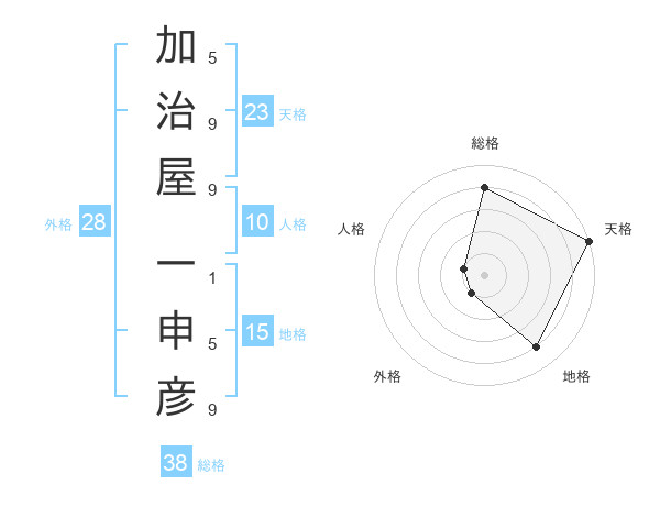 加治屋 一申彦さんを姓名の画数から五運を鑑定