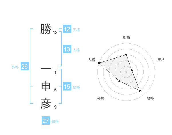 勝 一申彦さんを姓名の画数から五運を鑑定