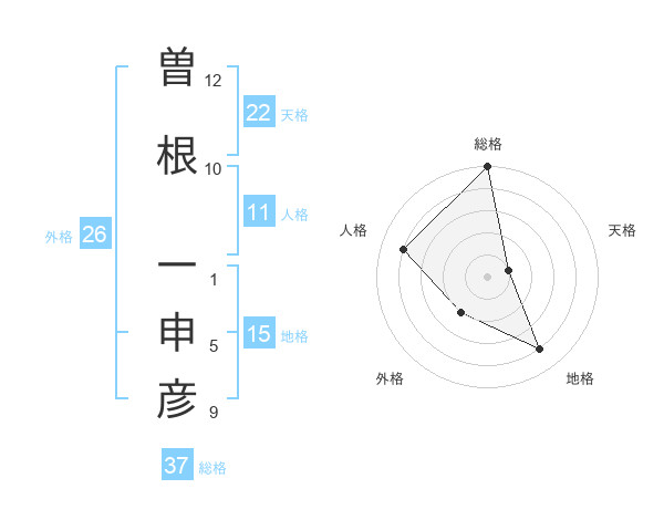 曽根 一申彦さんを姓名の画数から五運を鑑定